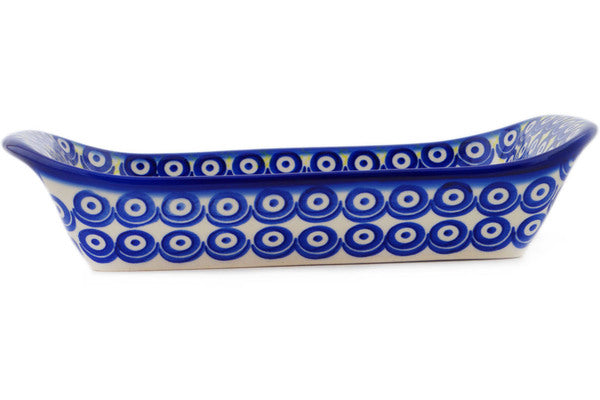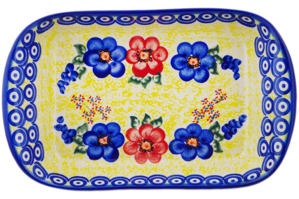 This Polish Pottery 11" Platter with Handles - Neon Poppies is handmade and handpainted by the Ceramika Bona factory in Boleslawiec, Poland.