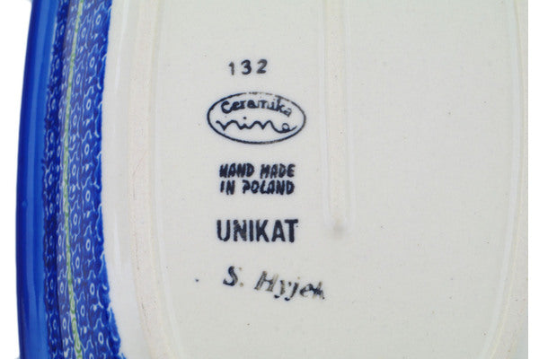 This Polish Pottery 11" Rectangular Baker with Handles - Beekeeper Gnome is handmade and handpainted by the Ceramika Nina factory in Boleslawiec, Poland.