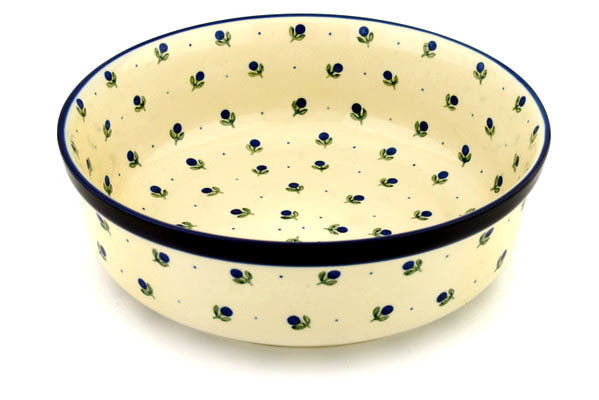 This Polish Pottery 12" Bowl - Blue Buds is handmade and handpainted by the Ceramika Artystyczna factory in Boleslawiec, Poland.