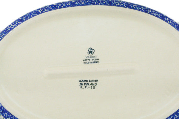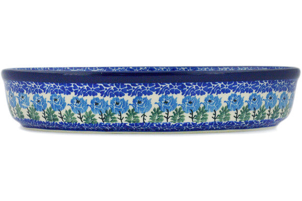 This Polish Pottery 12" Oval Baker - Blue Rosette Wreath is handmade and handpainted by the Ceramika Artystyczna factory in Boleslawiec, Poland.