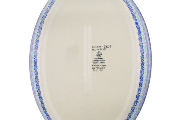 This Polish Pottery 12" Oval Baker - Deep Winter is handmade and handpainted by the Ceramika Artystyczna factory in Boleslawiec, Poland.
