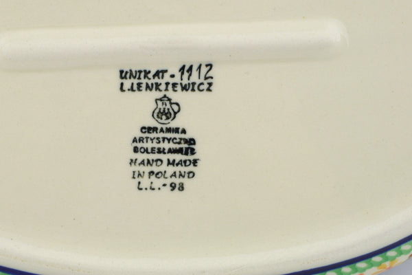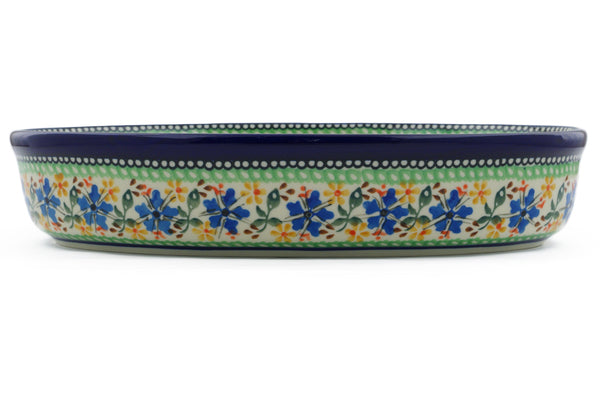 This Polish Pottery 12" Oval Baker - Periwinkle Sunrise is handmade and handpainted by the Ceramika Artystyczna factory in Boleslawiec, Poland.
