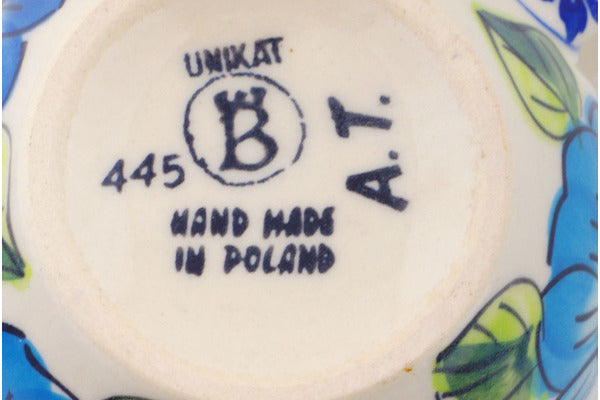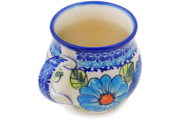 This Polish Pottery 12 oz Bubble Mug - Bold Blue Poppies is handmade and handpainted by the Ceramika Bona factory in Boleslawiec, Poland.