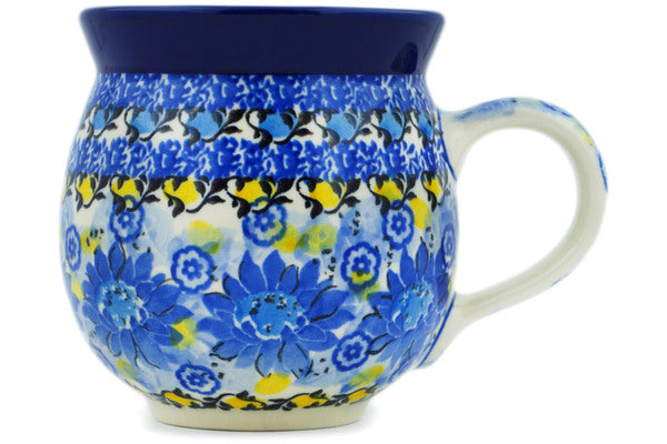 This Polish Pottery 12 oz Bubble Mug - Deep Blue is handmade and handpainted by the Ceramika Artystyczna factory in Boleslawiec, Poland.