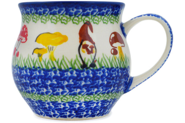 This Polish Pottery 12 oz Bubble Mug - Mushroom Garden is handmade and handpainted by the Ceramika Nina factory in Boleslawiec, Poland.