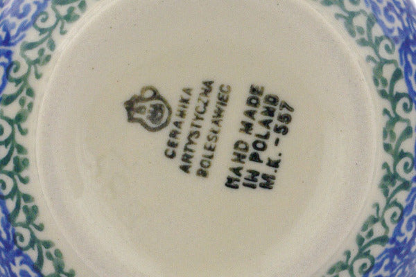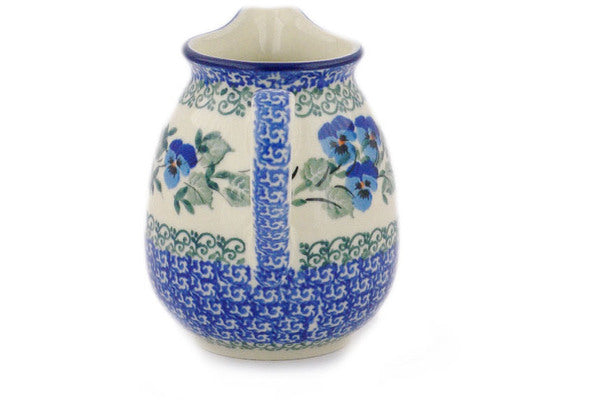 This Polish Pottery 12 oz Pitcher - Blue Pansy is handmade and handpainted by the Ceramika Artystyczna factory in Boleslawiec, Poland.