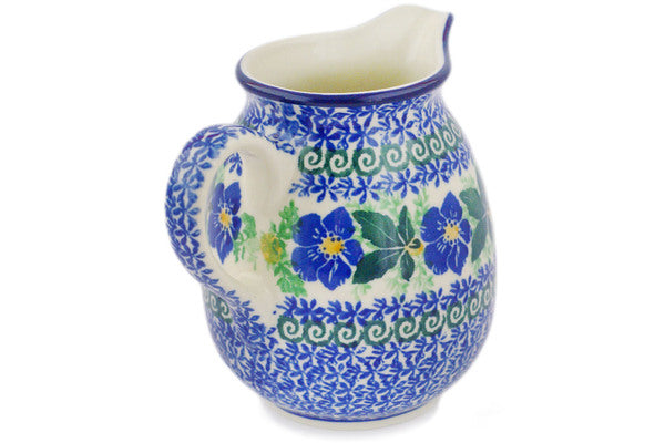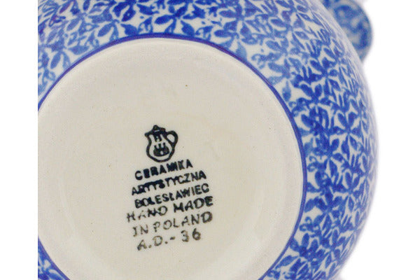 This Polish Pottery 12 oz Pitcher - Infinity Flower is handmade and handpainted by the Ceramika Artystyczna factory in Boleslawiec, Poland.