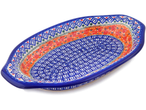 Ceramika Bona factory stamp | Polish Pottery HouseThis Polish Pottery 12" Platter with Handles - Grecian Fire Tulips is handmade and handpainted by the Ceramika Bona factory in Boleslawiec, Poland.