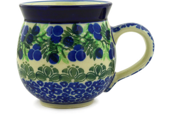This Polish Pottery 12 oz Bubble Mug - Blueberry Fields Forever is handmade and handpainted by the Ceramika Artystyczna factory in Boleslawiec, Poland.