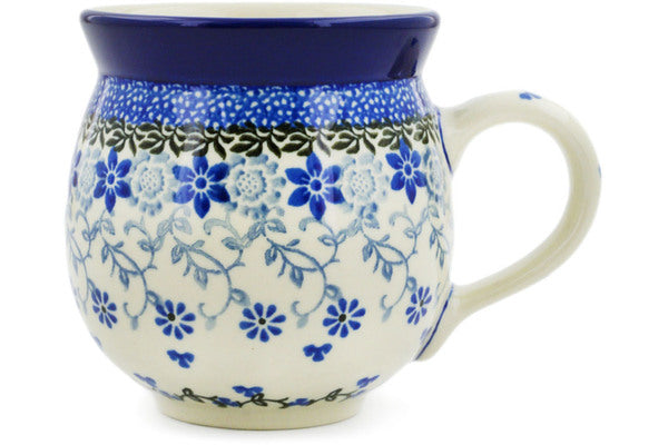This Polish Pottery 12 oz Bubble Mug - First Snow is handmade and handpainted by the Ceramika Artystyczna factory in Boleslawiec, Poland.