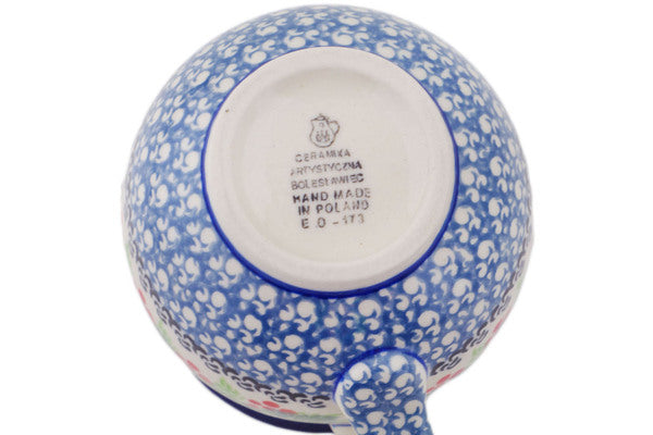 This Polish Pottery 12 oz Bubble Mug - Holly Berry Wreath is handmade and handpainted by the Ceramika Artystyczna factory in Boleslawiec, Poland.