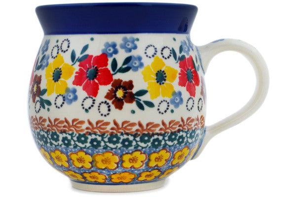 This Polish Pottery 12 oz Bubble Mug - Pretty In Bloom is handmade and handpainted by the Ceramika Artystyczna factory in Boleslawiec, Poland.