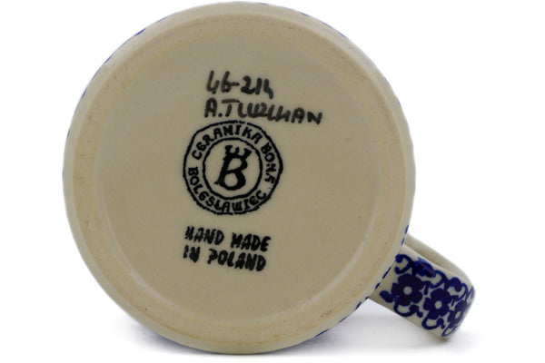 This Polish Pottery 13 oz Mug - Floral Peacock is handmade and handpainted by the Ceramika Bona factory in Boleslawiec, Poland.