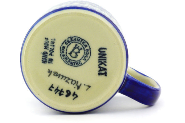 This Polish Pottery 13 oz Mug - Winter Blue is handmade and handpainted by the Ceramika Bona factory in Boleslawiec, Poland.