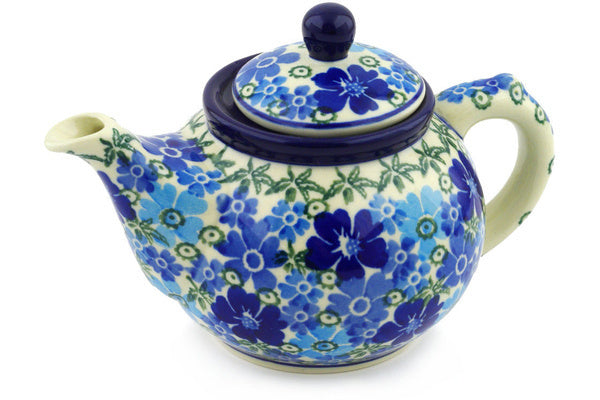 This Polish Pottery 13 oz Tea or Coffee Pot - Fields Of Blue is handmade and handpainted by the Ceramika Artystyczna factory in Boleslawiec, Poland.