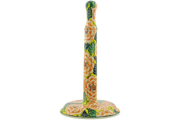 This Polish Pottery 13" Paper Towel Stand - Orange Peonies is handmade and handpainted by the Ceramika Artystyczna factory in Boleslawiec, Poland.