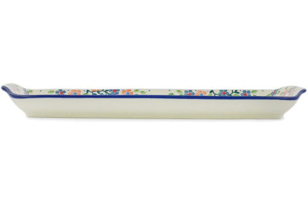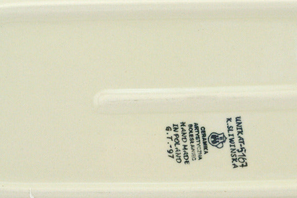 This Polish Pottery 13" Platter with Handles - Verdant Hummingbird Spring is handmade and handpainted by the Ceramika Artystyczna factory in Boleslawiec, Poland.