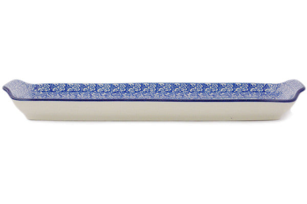 This Polish Pottery 13" Platter with Handles - Deep Winter is handmade and handpainted by the Ceramika Artystyczna factory in Boleslawiec, Poland.