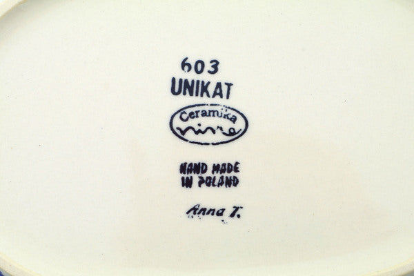 This Polish Pottery 13" Platter with Handles - Mushroom Love is handmade and handpainted by the Ceramika Nina factory in Boleslawiec, Poland.