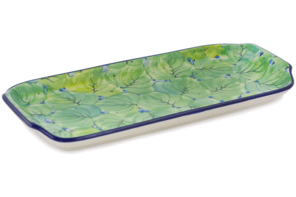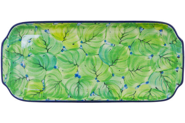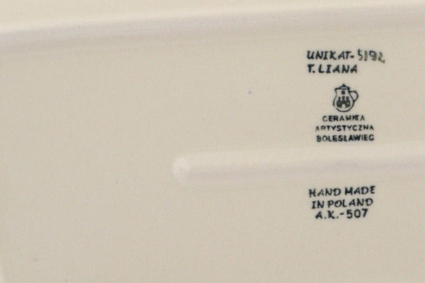 This Polish Pottery 13" Platter with Handles - U5192 is handmade and handpainted by the Ceramika Artystyczna factory in Boleslawiec, Poland.