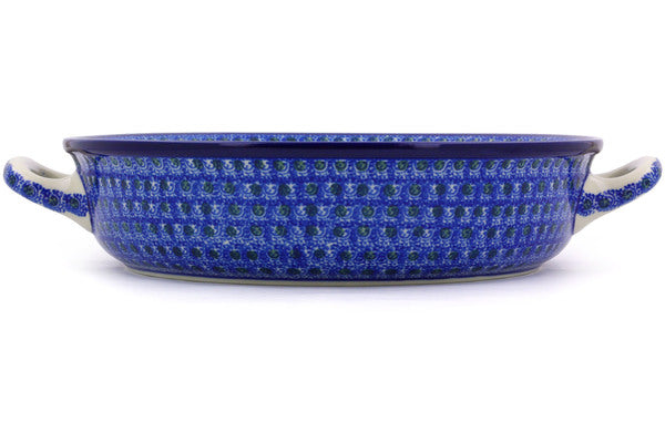 Ceramika Artystyczna factory stamp | Polish Pottery HouseThis Polish Pottery 13" Round Baker with Handles - Blue Poppies is handmade and handpainted by the Ceramika Artystyczna factory in Boleslawiec, Poland.