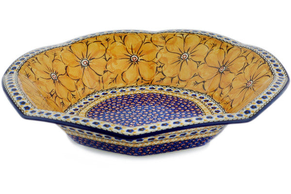 This Polish Pottery 14" Bowl - Marigold Dreams is handmade and handpainted by the Ceramika Artystyczna factory in Boleslawiec, Poland.
