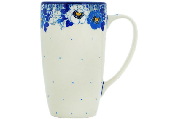This Polish Pottery 14 oz Mug - Blue Spring Blue is handmade and handpainted by the Ceramika Artystyczna factory in Boleslawiec, Poland.