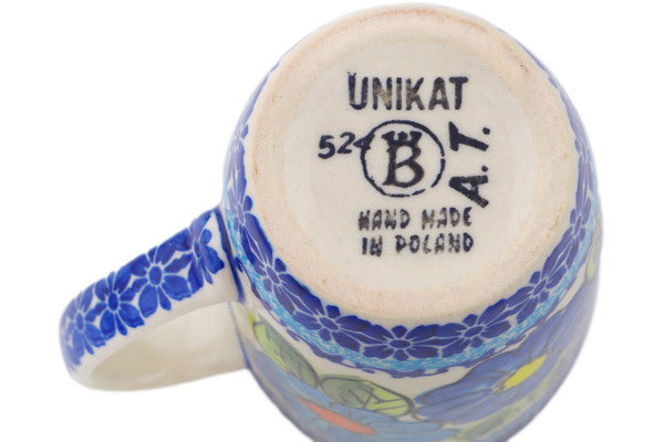 This Polish Pottery 14 oz Mug - Bold Blue Poppies is handmade and handpainted by the Ceramika Bona factory in Boleslawiec, Poland.