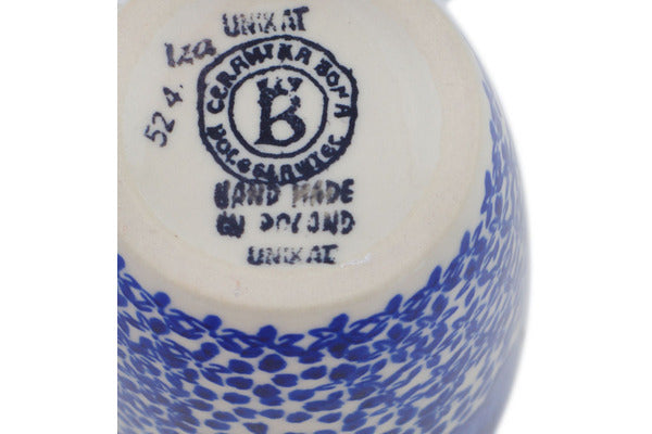 This Polish Pottery 14 oz Mug - Cobalt Fantasy is handmade and handpainted by the Ceramika Bona factory in Boleslawiec, Poland.