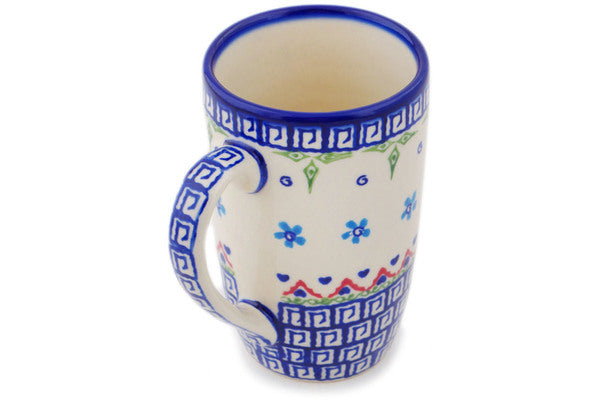 This Polish Pottery 14 oz Mug - Little Blue Flowers is handmade and handpainted by the Ceramika Bona factory in Boleslawiec, Poland.