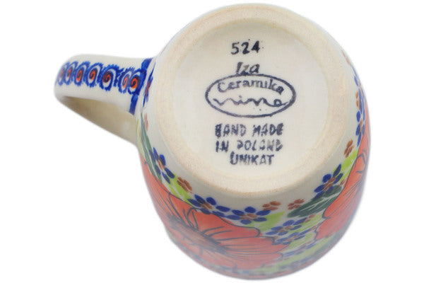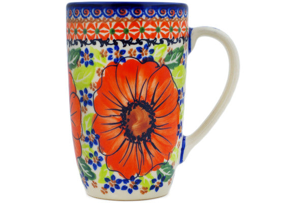 This Polish Pottery 14 oz Mug - Orange Zinnia is handmade and handpainted by the Ceramika Nina factory in Boleslawiec, Poland.