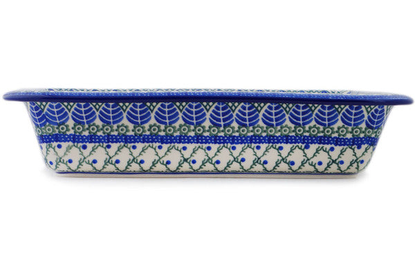 This Polish Pottery 14" Rectangular Baker - Blue Alpine is handmade and handpainted by the Ceramika Artystyczna factory in Boleslawiec, Poland.