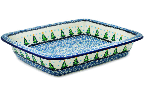 This Polish Pottery 14" Rectangular Baker - Ethereal Evergreen is handmade and handpainted by the Ceramika Artystyczna factory in Boleslawiec, Poland.