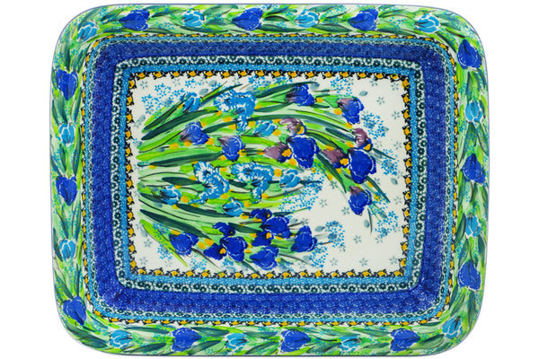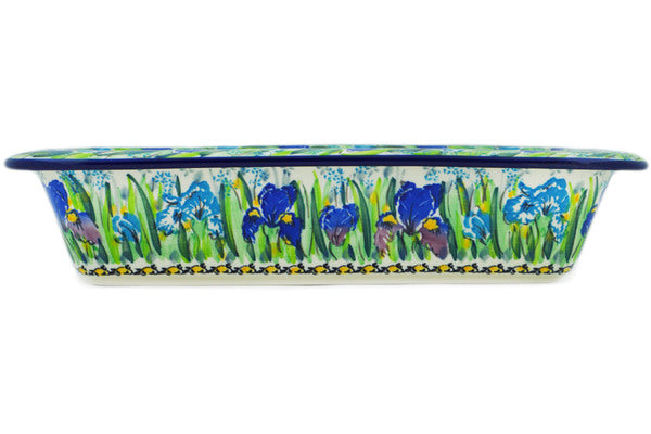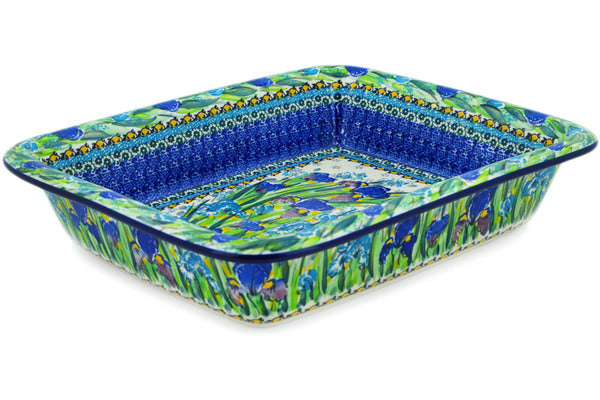 This Polish Pottery 14" Rectangular Baker - Iris Field is handmade and handpainted by the Ceramika Artystyczna factory in Boleslawiec, Poland.
