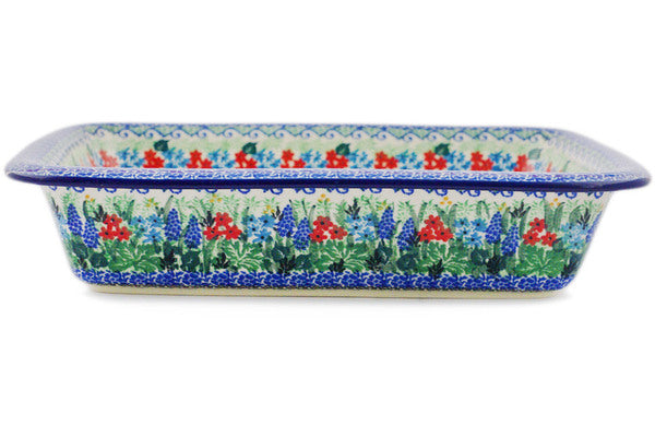 This Polish Pottery 14" Rectangular Baker - Mariposa is handmade and handpainted by the Ceramika Artystyczna factory in Boleslawiec, Poland.