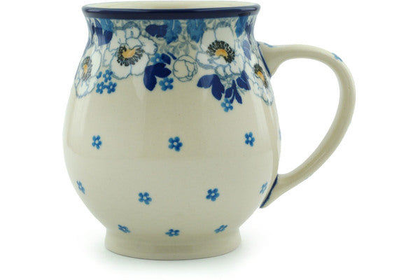 This Polish Pottery 15 oz Bubble Mug - Blue Spring is handmade and handpainted by the Ceramika Artystyczna factory in Boleslawiec, Poland.