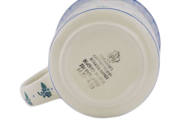 This Polish Pottery 15 oz Mug - Holly Robin is handmade and handpainted by the Ceramika Artystyczna factory in Boleslawiec, Poland.