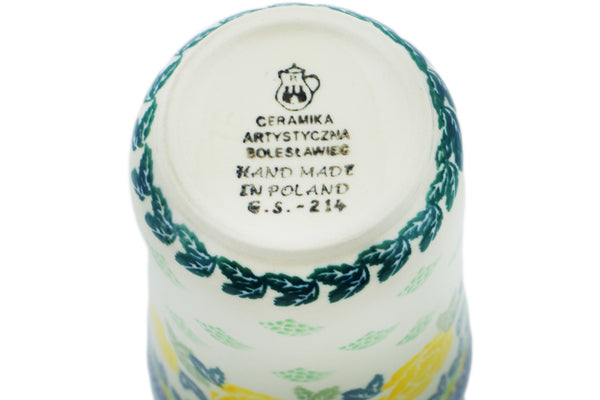 This Polish Pottery 15 oz Tumbler - Yellow Rose is handmade and handpainted by the Ceramika Artystyczna factory in Boleslawiec, Poland.
