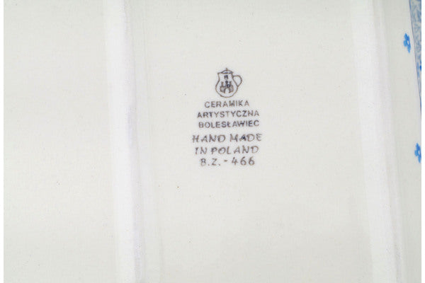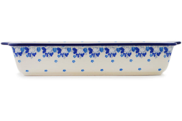This Polish Pottery 15" Rectangular Baker with Handles - Blue Spring is handmade and handpainted by the Ceramika Artystyczna factory in Boleslawiec, Poland.