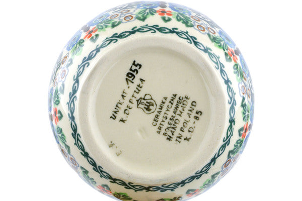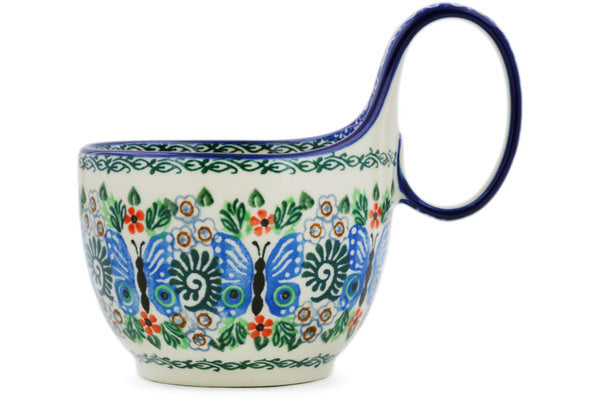 This Polish Pottery 6" Bowl with Loop-Handle - Blue Butterfly Brigade is handmade and handpainted by the Ceramika Artystyczna factory in Boleslawiec, Poland.