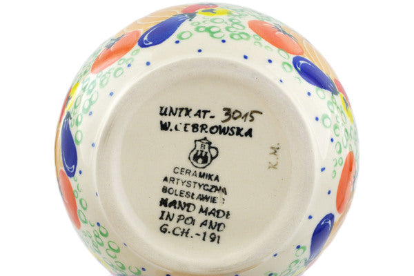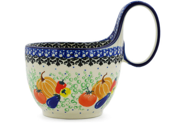This Polish Pottery 6" Bowl with Loop-Handle - Glorious Sequence is handmade and handpainted by the Ceramika Artystyczna factory in Boleslawiec, Poland.