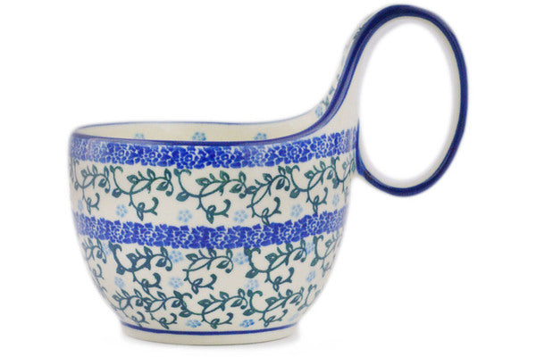 This Polish Pottery 6" Bowl with Loop-Handle - Petite Blue Vine is handmade and handpainted by the Ceramika Artystyczna factory in Boleslawiec, Poland.