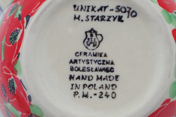 This Polish Pottery 6" Bowl with Loop-Handle - Spring Blossom Harmony is handmade and handpainted by the Ceramika Artystyczna factory in Boleslawiec, Poland.