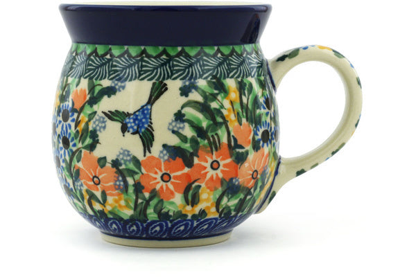 This Polish Pottery 16 oz Bubble Mug - Birds In Flight is handmade and handpainted by the Ceramika Artystyczna factory in Boleslawiec, Poland.