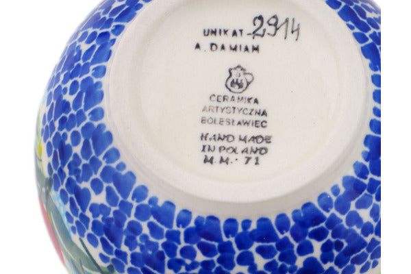 This Polish Pottery 16 oz Bubble Mug - Blooming Joy is handmade and handpainted by the Ceramika Artystyczna factory in Boleslawiec, Poland.