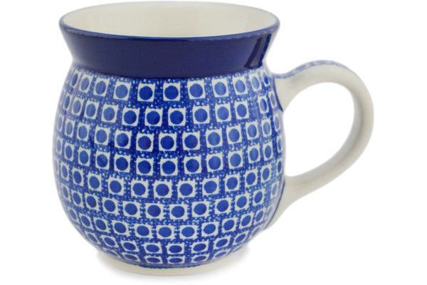 This Polish Pottery 16 oz Bubble Mug - Blue Bingo is handmade and handpainted by the Ceramika Artystyczna factory in Boleslawiec, Poland.