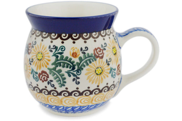 This Polish Pottery 16 oz Bubble Mug - Fall Sunflowers is handmade and handpainted by the Ceramika Artystyczna factory in Boleslawiec, Poland.