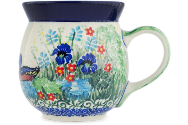 This Polish Pottery 16 oz Bubble Mug - Lake Wildflower is handmade and handpainted by the Ceramika Artystyczna factory in Boleslawiec, Poland.