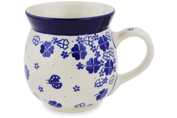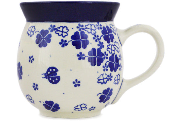 This Polish Pottery 16 oz Bubble Mug - Luck Of The Cobalt Clover is handmade and handpainted by the Ceramika Artystyczna factory in Boleslawiec, Poland.