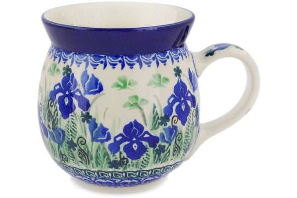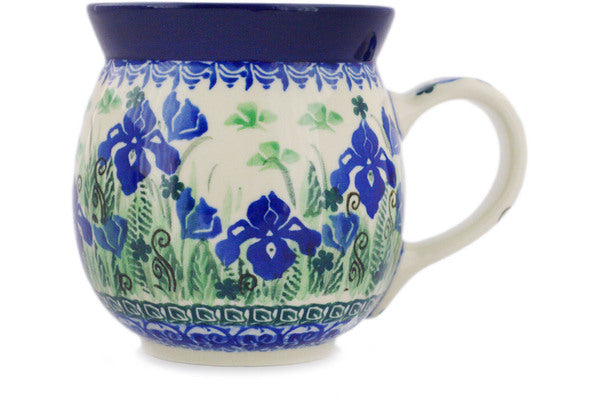 This Polish Pottery 16 oz Bubble Mug - Midnight Iris is handmade and handpainted by the Ceramika Artystyczna factory in Boleslawiec, Poland.